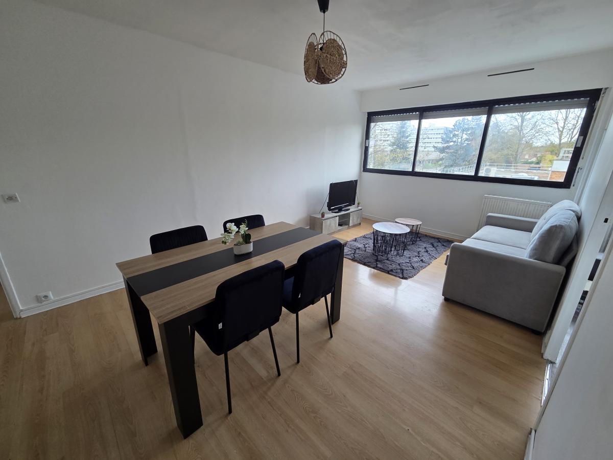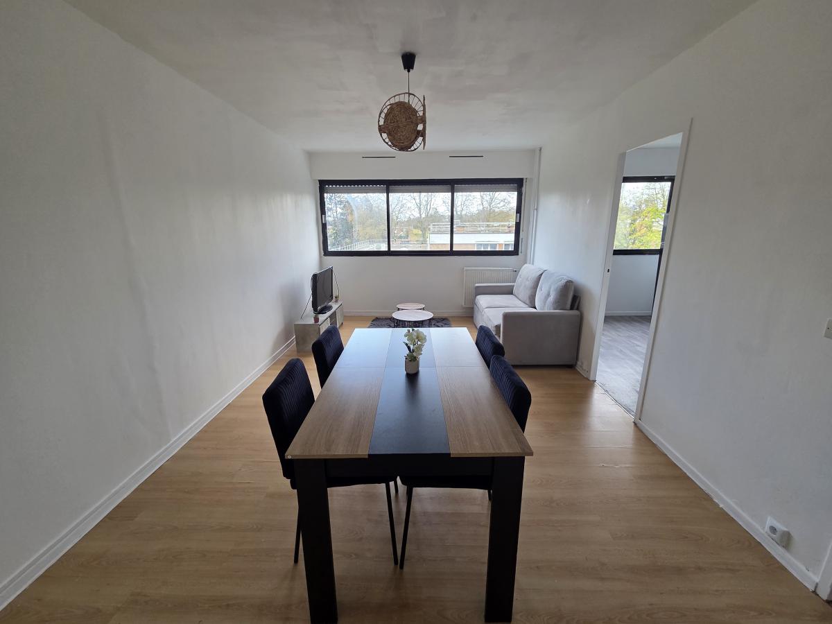 A LOUER A MONS EN BAROEUL - AVENUE SCHUMAN - AU PIED DU METRO MAIRIE DE MONS - DANS UNE RESIDENCE AVEC ASCENSEUR - Un appartement meublé de type 3, de 63.49 m2, situé au 2eme étage. il comprend un hall d 'entrée, séjour de 19 m2 env, une cuisine séparée équipée , 2 chambres, salle de bains et WC séparés, un cellier, placards.