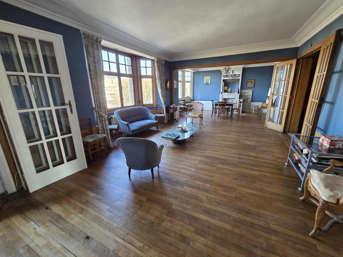A VENDRE A LILLE, sur la place du Maréchal Leclerc, devenue un parc entièrement végétalisé, à moins de 5 minutes à pied du métro Cormontaigne, Un appartement de charme, de 165 m2 habitables, situé au 5eme étage, dans une superbe copropriété ancienne de charme, avec ascenseur. Il comprend un très grand hall d'entrée, une très belle pièce de vie parquetée avec un avancée en baw window qui ajoute charme et lumière, ( 55 m2 ) une cuisine séparée donnant accès à une petite loggia, 4 chambres - certaines avec un point d'eau, 1 salle de bains, 1 wc séparé.