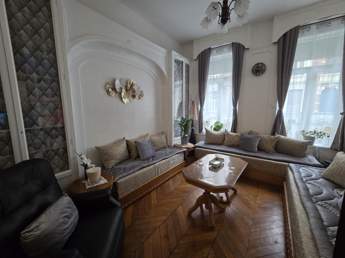 A VENDRE A LILLE - A 5 MINUTES A PIED DES METROS WAZEMMES ET GAMBETTA - UNE MAISON AVEC BEAUCOUP DE CACHET ANCIEN - EN TRES BON ETAT, DE 185 M2 HABITABLES ENV. Elle comprend une belle pièce de vie avec parquet chevrons de 30 m2 hab environ, une cuisine séparée de 14.5 m , une salle de bains. wc séparés. Accès à une cour ensoleillée au calme.