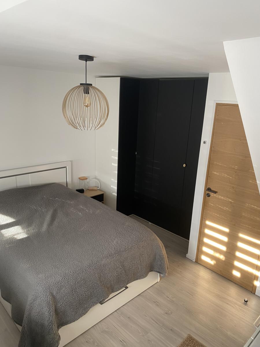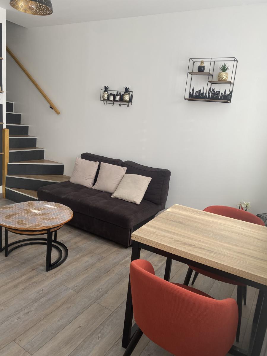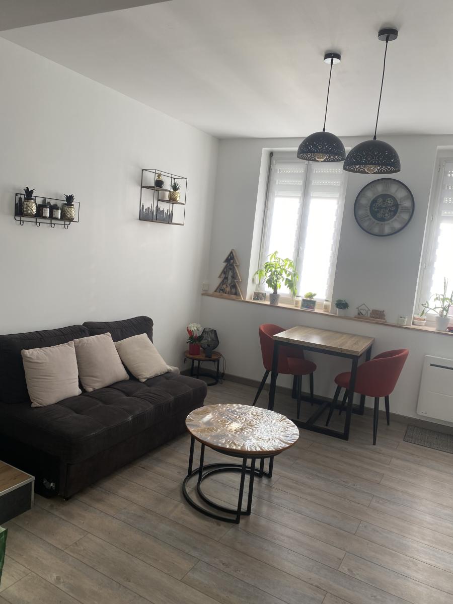 rénovée avec soin, maison/appartement fonctionnel disposant d'un salon et cuisine équipée au rdc. 2 chambres, wc et salle de bains avec douche à l'étage.