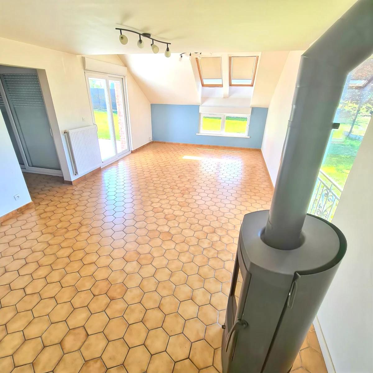 FRELINGHIEN Prairies des Willemots Maison individuelle offrant 130 m² de surface habitable sur une parcelle d'environ 660 m². Elle dispose d'un entrée, un wc, un séjour - salon davec un poêle à bois, une cuisine aménagée, une chambre et une buanderie. A l'étage : un grand palier mezzanine (possible espace bureau), 3 chambres, une salle de bains, un dressing (ancienne salle de douche). Un garage et deux places de parking. Un jardin avec une terrasse clos bien exposé. Panneaux solaires (revente 100% de l'électricité). MAISON AVEC DE BEAUX VOLUMES ET LUMINEUSE.