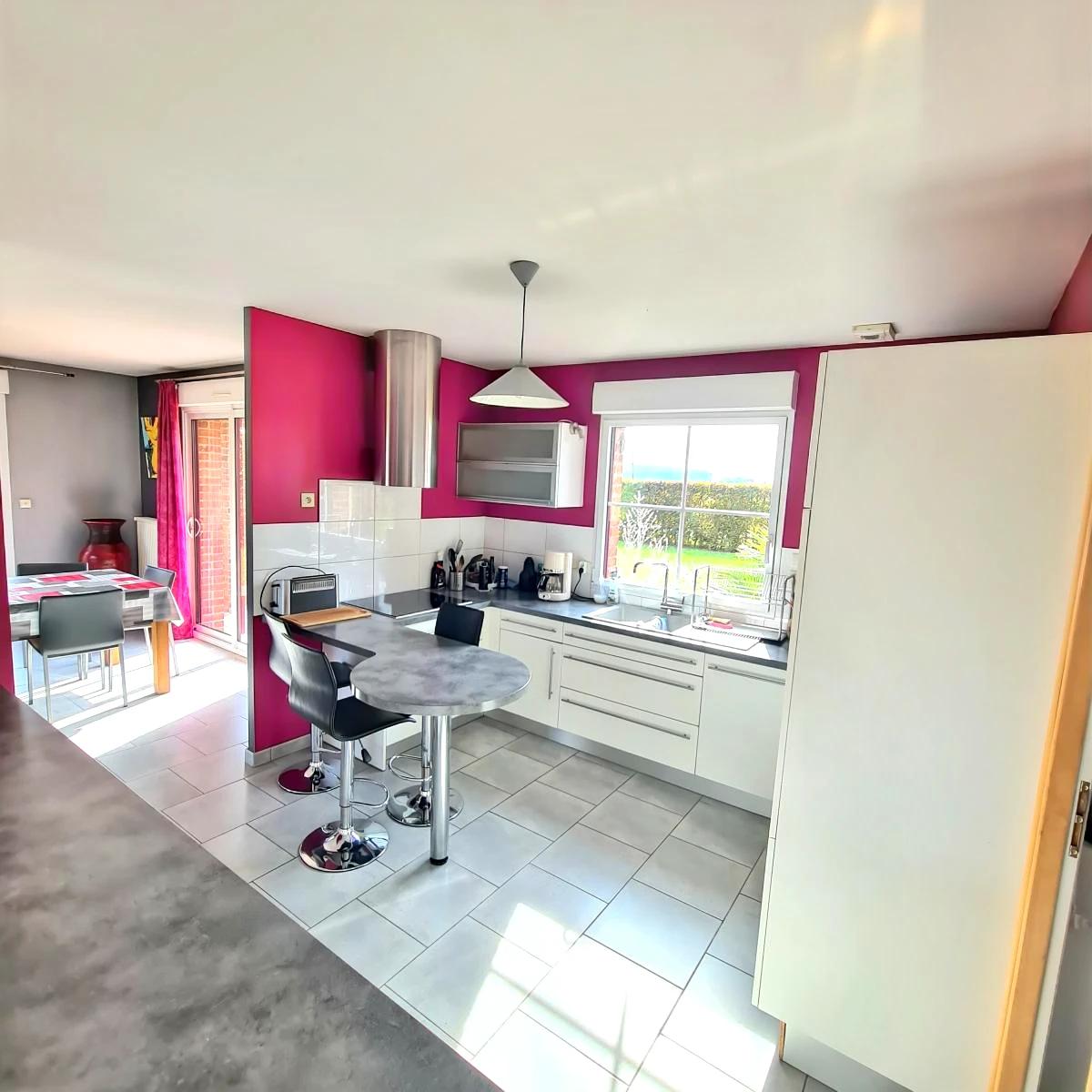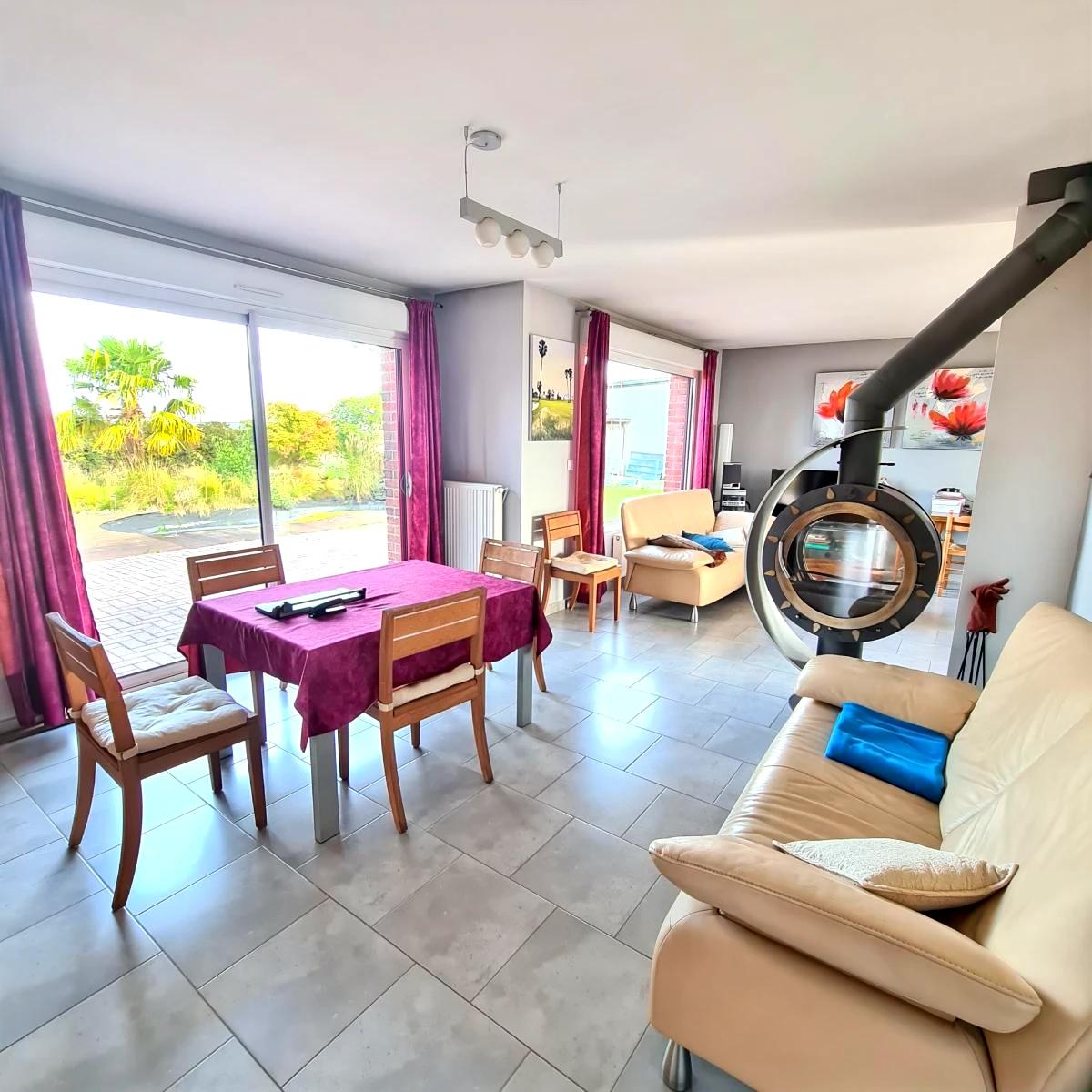 FRELINGHIEN proche Pérenchies Maison individuelle sur une parcelle de 1943 m². Elle dispose de 144 m² de surface habitable avec un garage et plusieurs stationnement. Beaux volumes et belles prestations pour cette maison construite en 2008. Au rez-de-chaussée : Hall d'entrée, wc, un espace parental comprenant une chambre et une salle de douche, un séjour-salon de 40 m² avec un poêle à bois, une cuisine équipée, un cellier/buanderie et un garage de 34 m². A l'étage : 4 chambres, un wc et une salle de bains. Jardin clos avec un petit bassin et 2 terrasses.