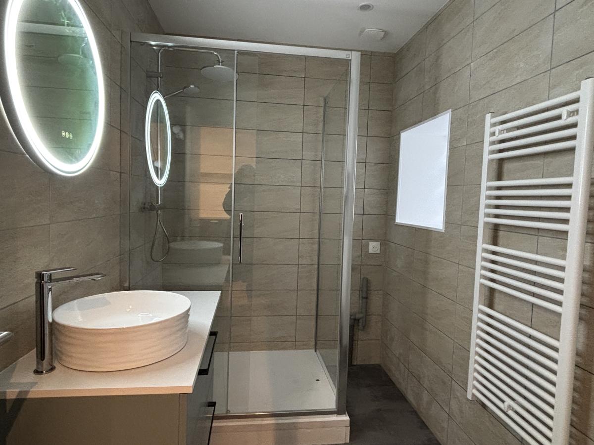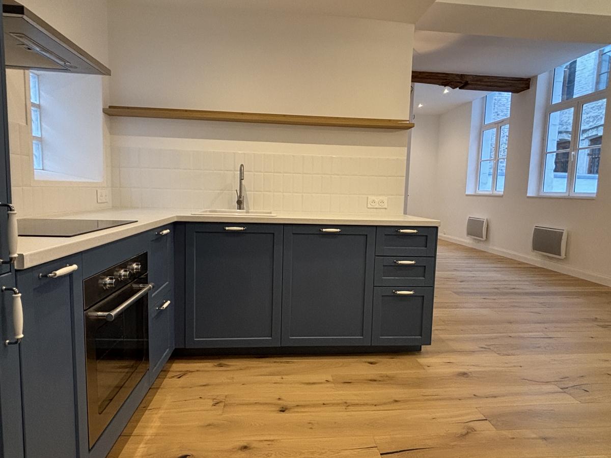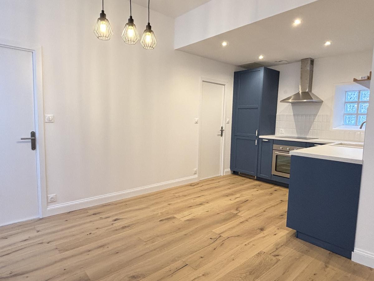 Appartement de 50 m² en Parfait état comprenant un séjour avec cuisine équipée ouverte, une chambre et une salle de bains.