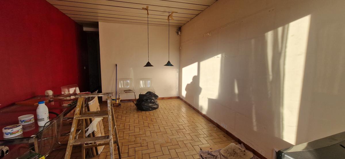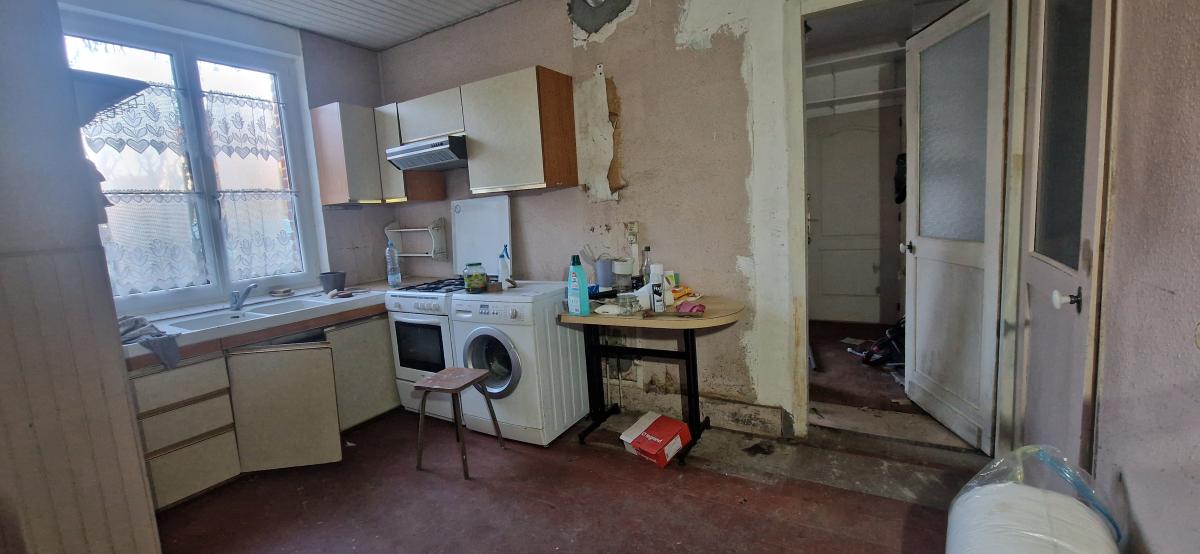 La maison d'une superficie d'environ 90 m² est à rénover, elle propose au rez-de-chaussée, un hall d'entrée, un salon salle à manger de 18 m² (env), une cuisine de 10 m² (env), une pièce pouvant servir de chambre (brut), un wc.