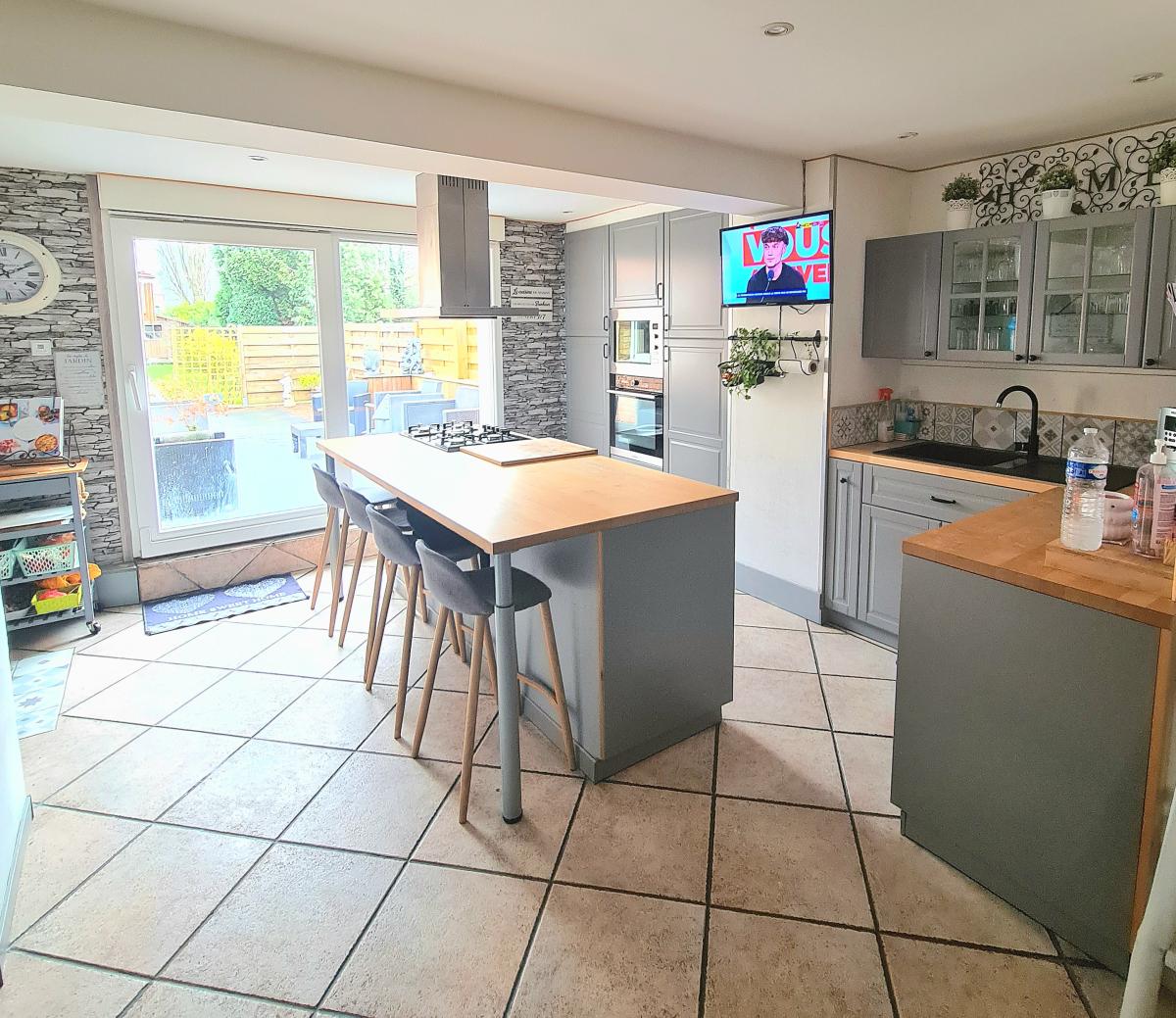 COMINES proche centre ville semi-plain pied individuel de 130m² de surface habitable sur une parcelle de 481 m². Le garage étant devant la maison vous bénéficiez d'un calme dans ce charmant semi-plain pied atypique chauffé via pompe à chaleur avec la climatisation réversible (été/hiver) et un poêle à pellets tubé. Les panneaux solaires (posés en 2023)sont un confort supplémentaire grâce à une auto consommation de leur production (de plus EDF rachète le surplus de consommation en fin d'année). Il dispose d'une entrée avec 3 placards sur un séjour-salon de 45 m² et une cuisine équipée ouverte de 27 m² donnant sur la terrasse de 21 m²et son jardin d'environ 250m² (vis à vis limité avec les arbres et clôture autour de la maison), une salle de douche (douche italienne), une buanderie, 3 chambres dont une à l'étage et un grand dressing ou bureau. Un cabanon. VMC.