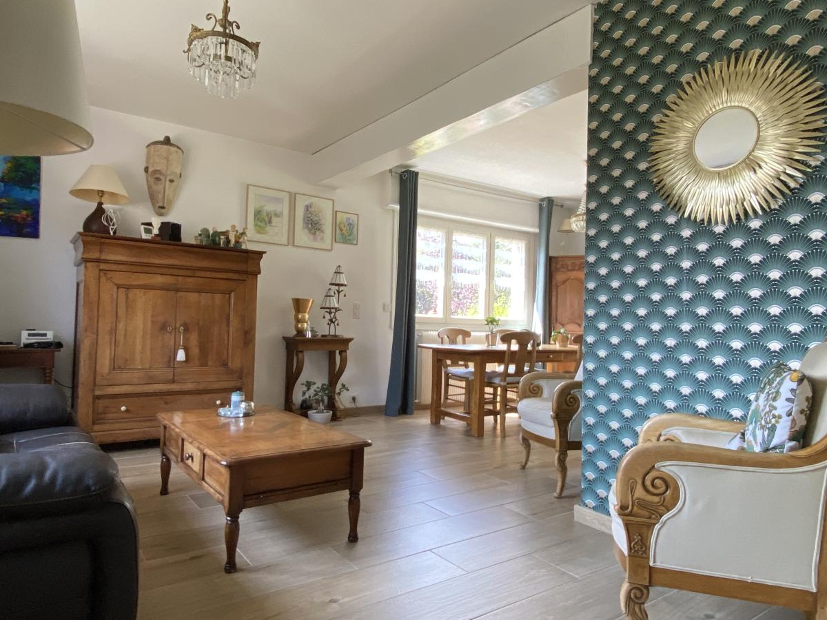 Séjour - cuisine équipée- 3 chambres - garage et jardin clos
