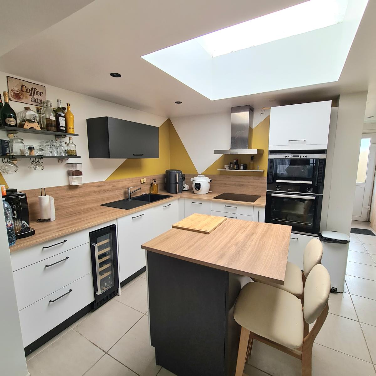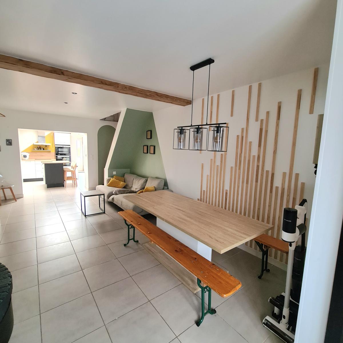 PERENCHIES Maison à continuer à rénover avec jardin et garage offrant 95 m² de surface habitable. Elle dispose d'un rez-de-chaussée rénové avec une entrée, un séjour-salon avec un poêle à pellets donnant sur une cuisine équipée (2023) et d'une salle de douche avec wc. Aux étages : 3 chambres, un grenier et des combles. Un jardin de 200m² et au fonds du jardin un garage à construire.