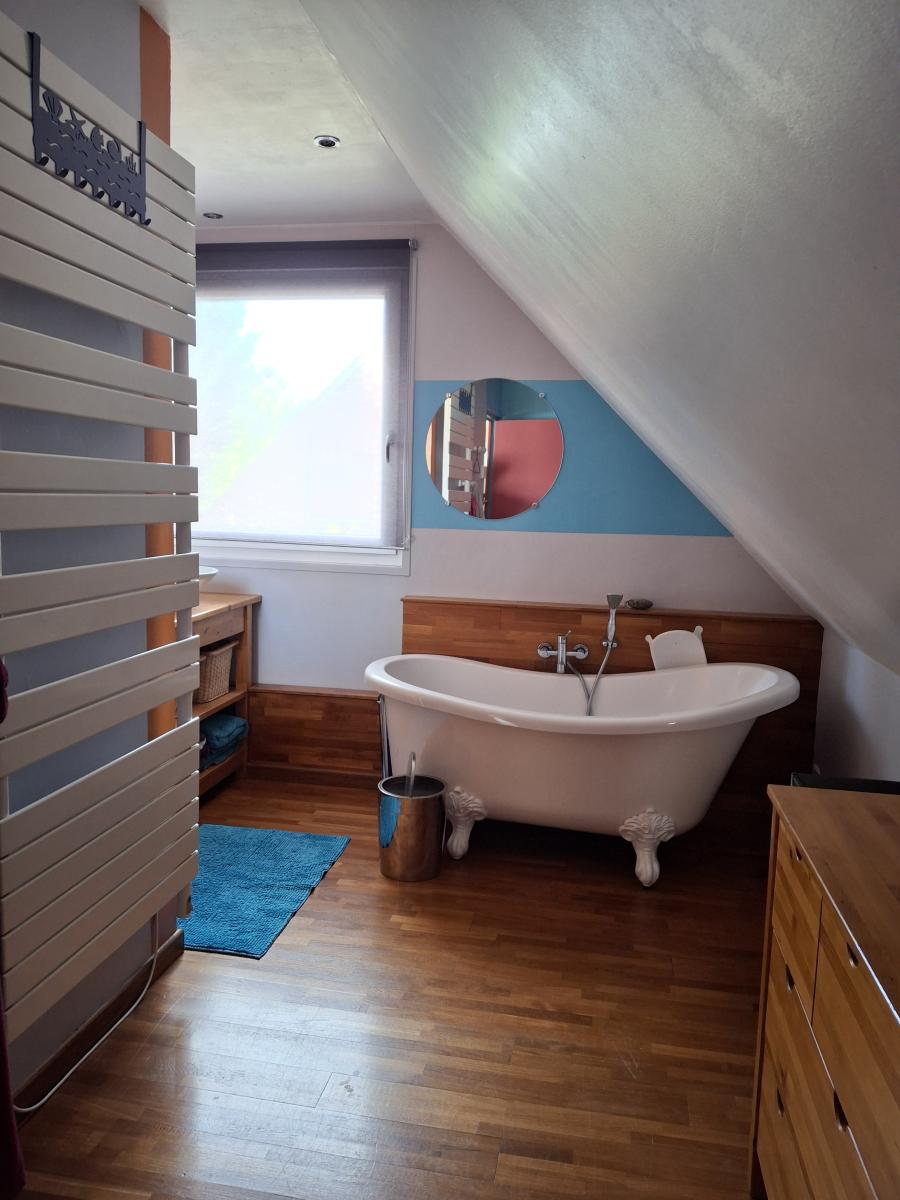 D'une surface habitable de 195m² elle se compose comme suit : Entrée , un SALON-SEJOUR de 62m² lumineux avec sol parquet et cheminée -une CUISINE équipée et un espace parentale : CHAMBRE, salle de douche, BUREAU, dressing et des WC séparés.