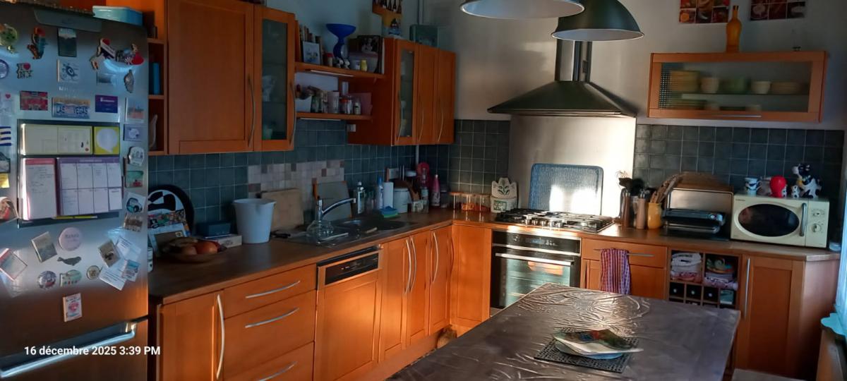 Séjour lumineux parquet chêne de 23m2, placards, vaste cuisine équipée carrelée accès sur une pergola (volets roulants) , sdb (douche poss. baignopire) et wc séparés